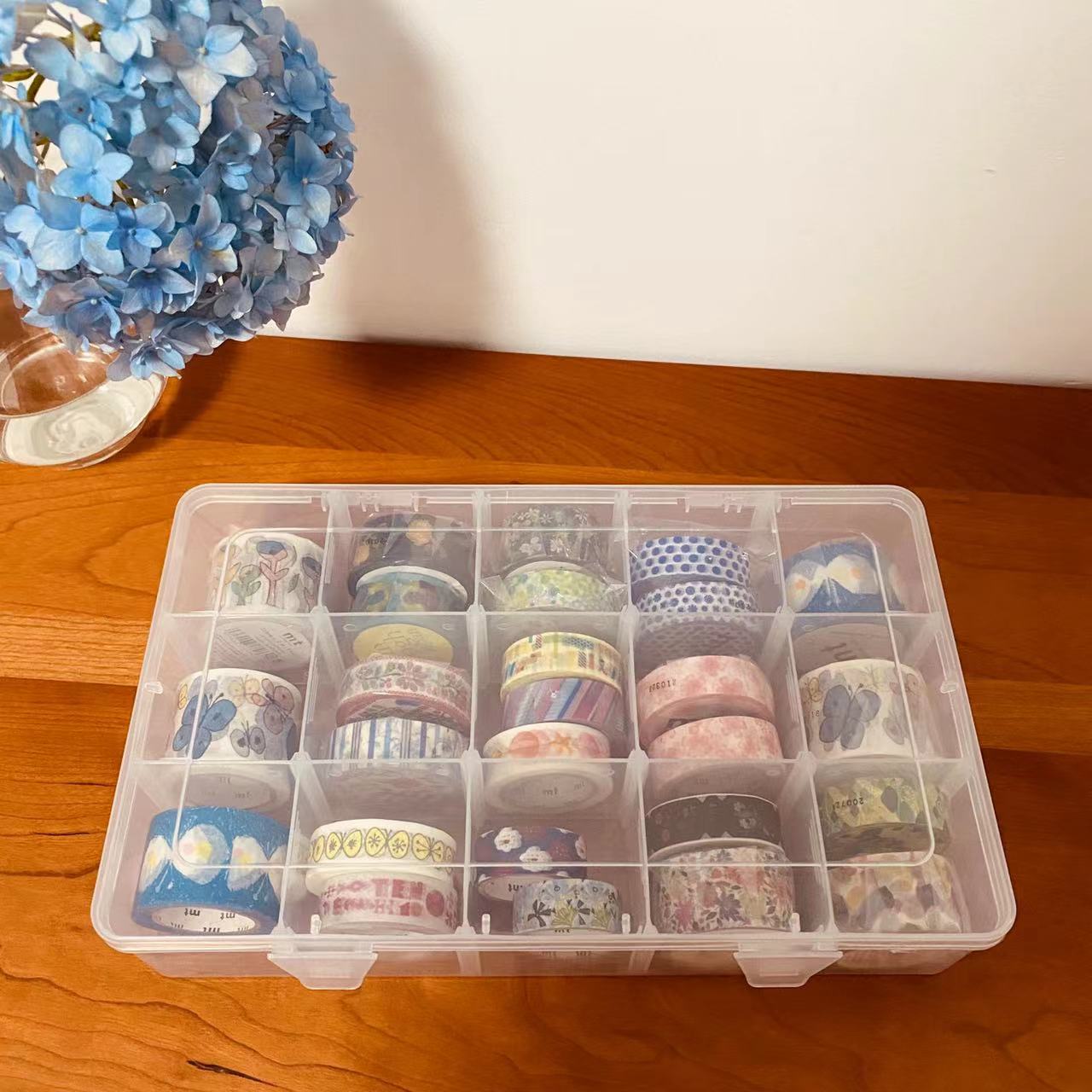 给纸胶带置了一个小盒子,才发现数量这么多。之前我都是把它们堆在一个闲置盒子里,要包书的时候,就在里面翻啊翻,翻一个合适的,现在一目了然了。什么色彩,什么图样,都清清楚楚的。