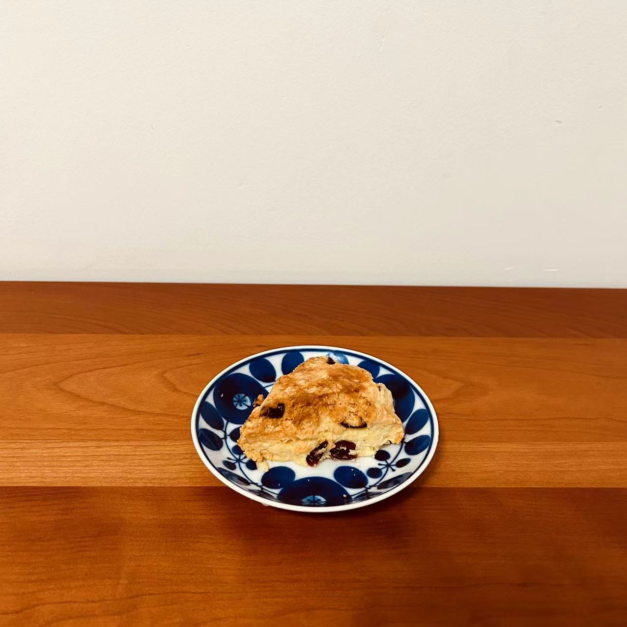 小小一块司康,却总能以它朴实的存在打动自己。享用它的时候,都能感到一种真实又微妙的快乐。酥酥的外皮,层次丰富又软糯的饼体,加上些许点缀的蔓越莓干,完美契合我对「饼」的想象。