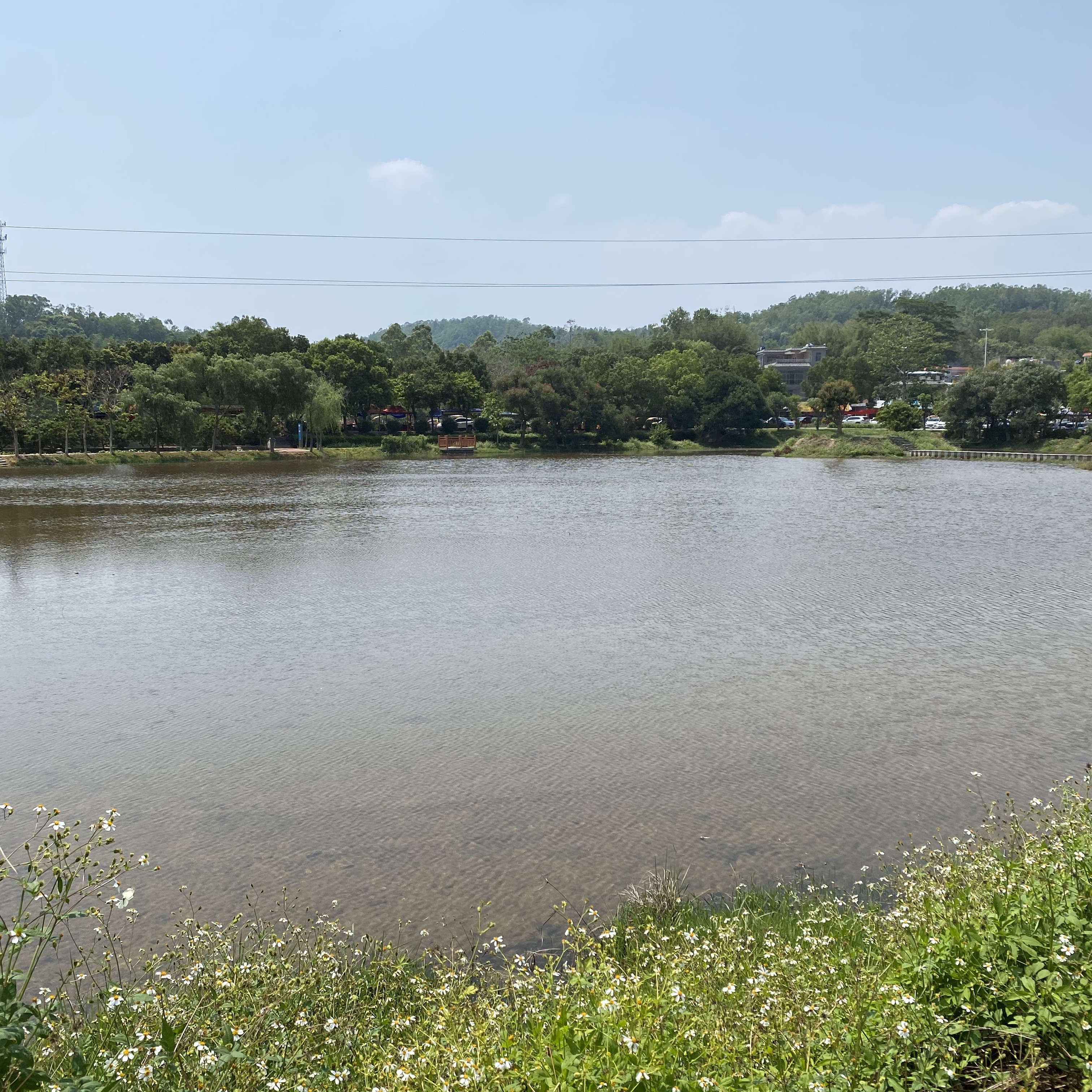 池塘边建了绿道,可以绕着走一圈,我便撑着伞,绕着池塘走了一圈。除了我们,也没有别人在这里走路。沿途看到的是随风飘扬的柳树,满遍盛放的小白花,花丛中时不时会有飞舞的白色蝴蝶,还有一些花样比较奇怪的树,当我纠结着它像什么的时候,便离它而去了,忘了拍照。花的样式看起来像红色辣椒(可花的颜色在红色与粉色之间),一摞摞地低垂着。想来,这种色彩及这番奇怪模样,再配合古朴的树干,倒适合被画成画,如此,看画的人会留意画的整体效果,而不去纠结画的是什么花。
