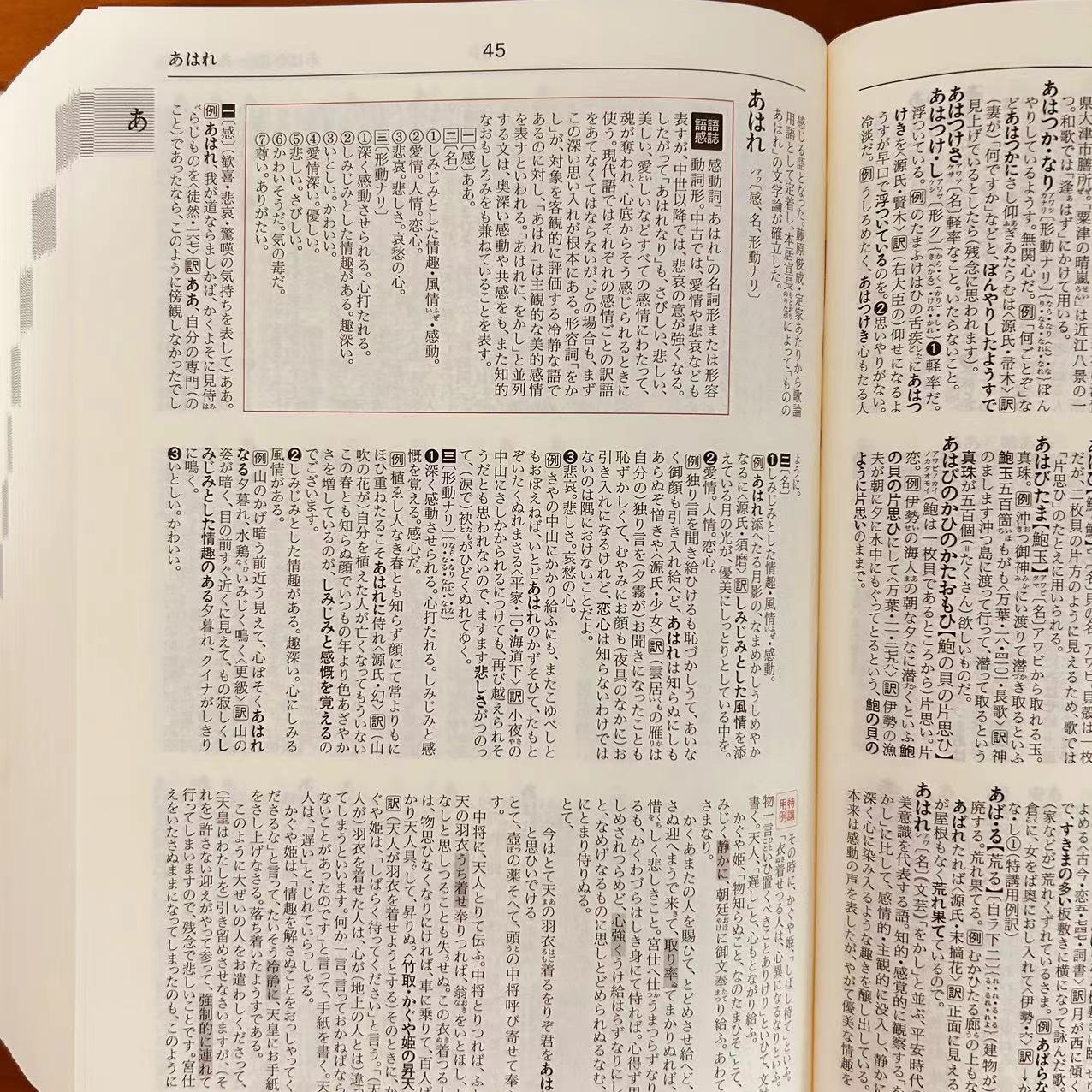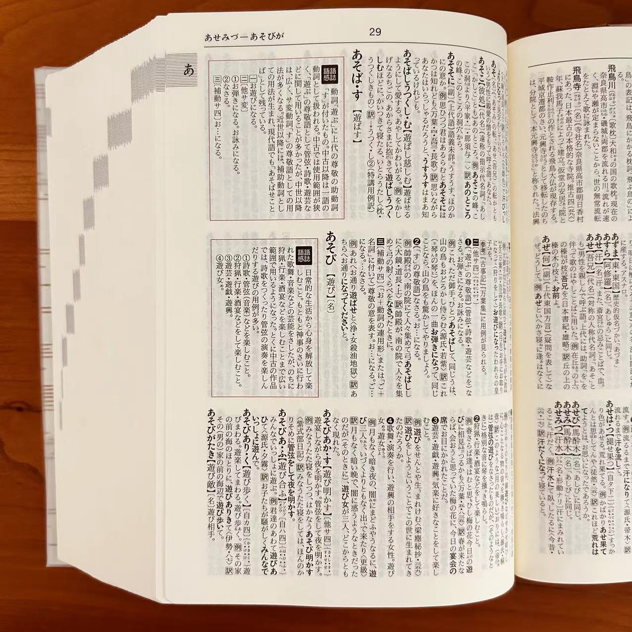 在我没有读平安时代的文学以前,我便买了一本古语辞典,当时纯粹因为好奇,也因为想要拥有它。当我把它拿在手上的时候,更是被它的小小存在所折服。它的装帧,它的厚度,它的字体的大小,它的纸张的手感,它的满满当当的每一页,通通长在我的心窝上一般。每次翻开它,都会喜笑颜开。惊叹,怎么会有这么美又可爱的辞典。