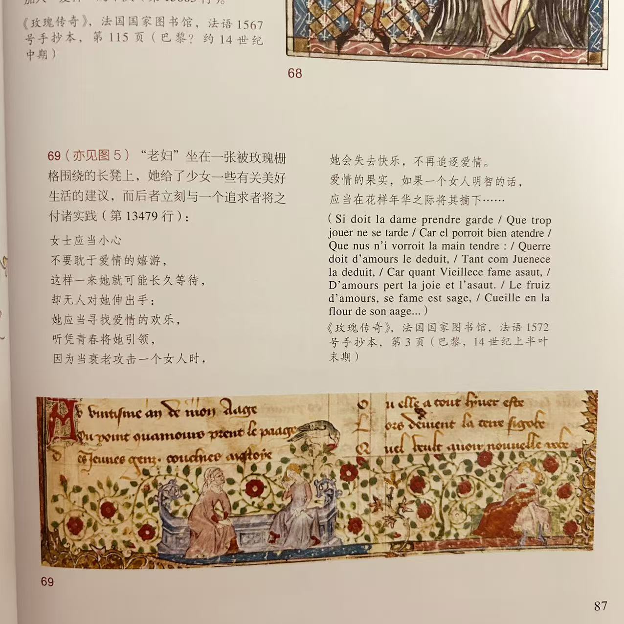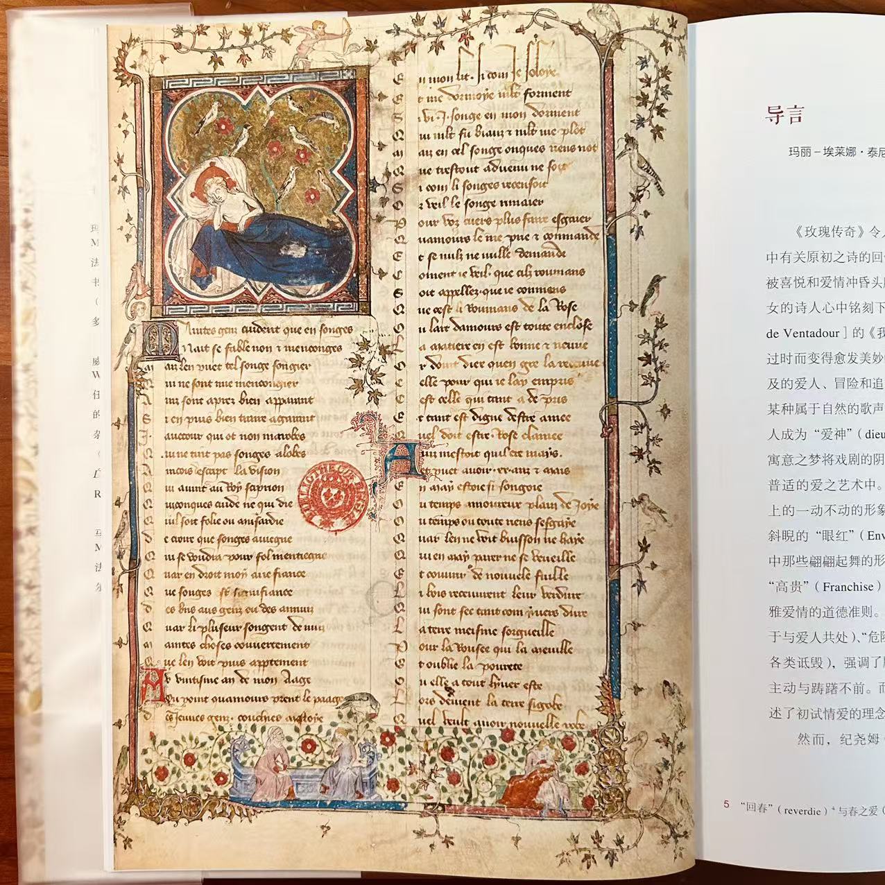 《玫瑰传奇》是诗歌,是爱的艺术,是玫瑰的诗化语言,当这些置于手抄本独特且悠久的羊皮纸上时,更添它的古雅之美。对我而言,《玫瑰传奇》不仅仅是无数句诠释爱的艺术的诗歌,还是一种关于手抄本流传的历史。在我只读过《玫瑰传奇》的只言片语的现在,可能「手抄本」这个存在本身更让我念兹在兹。它是手艺,是古时制书的奇妙呈现。
