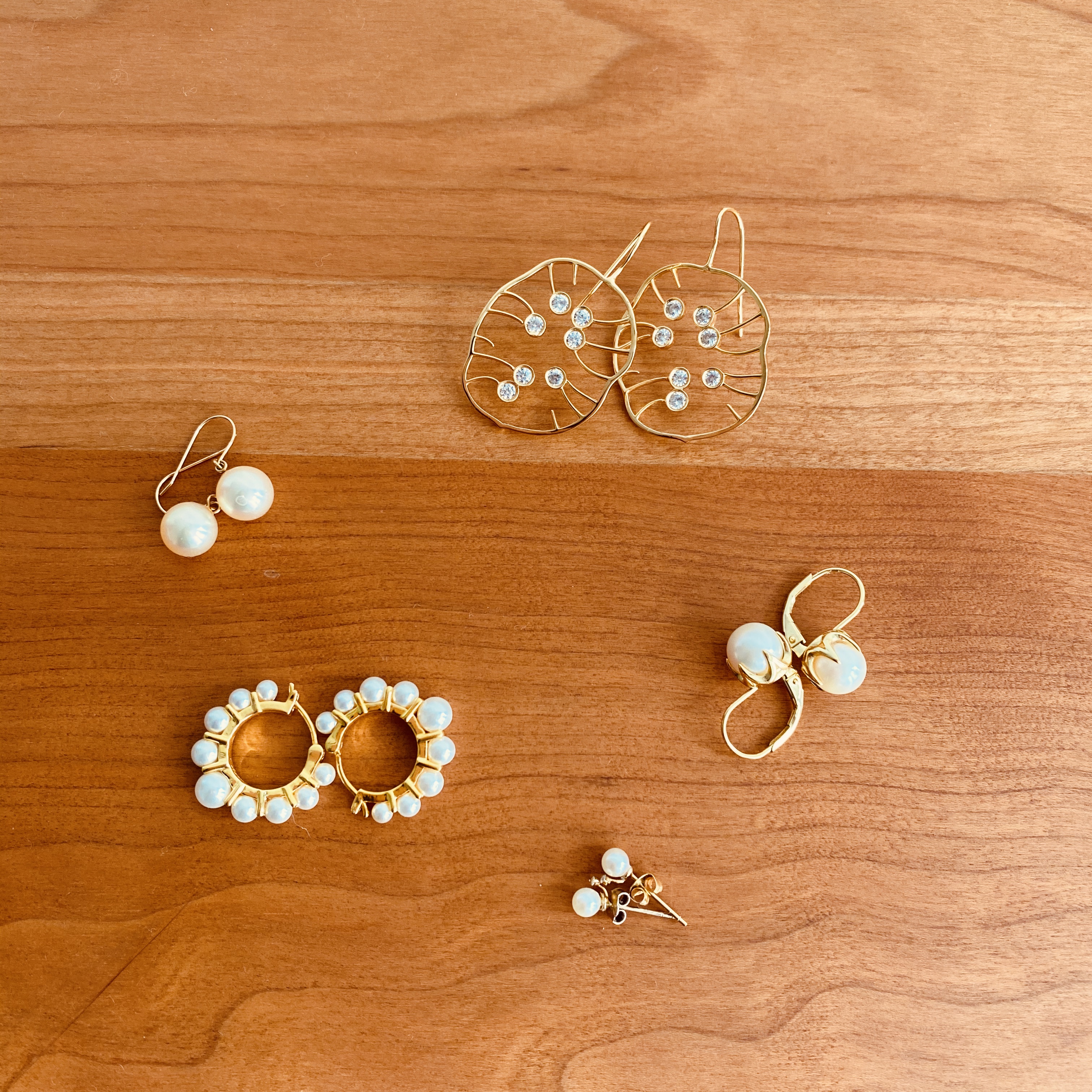 右下方这对正好是去年的这个时间买了,这一年里,几乎出门都戴它。耳饰是完全闭合的,无论怎么扭头也不用担心它会掉,适合现在这种既要戴口罩,又要时时整理头发的时刻。某天,有人称赞这对耳饰好看,我便又写了一篇《珍珠》。