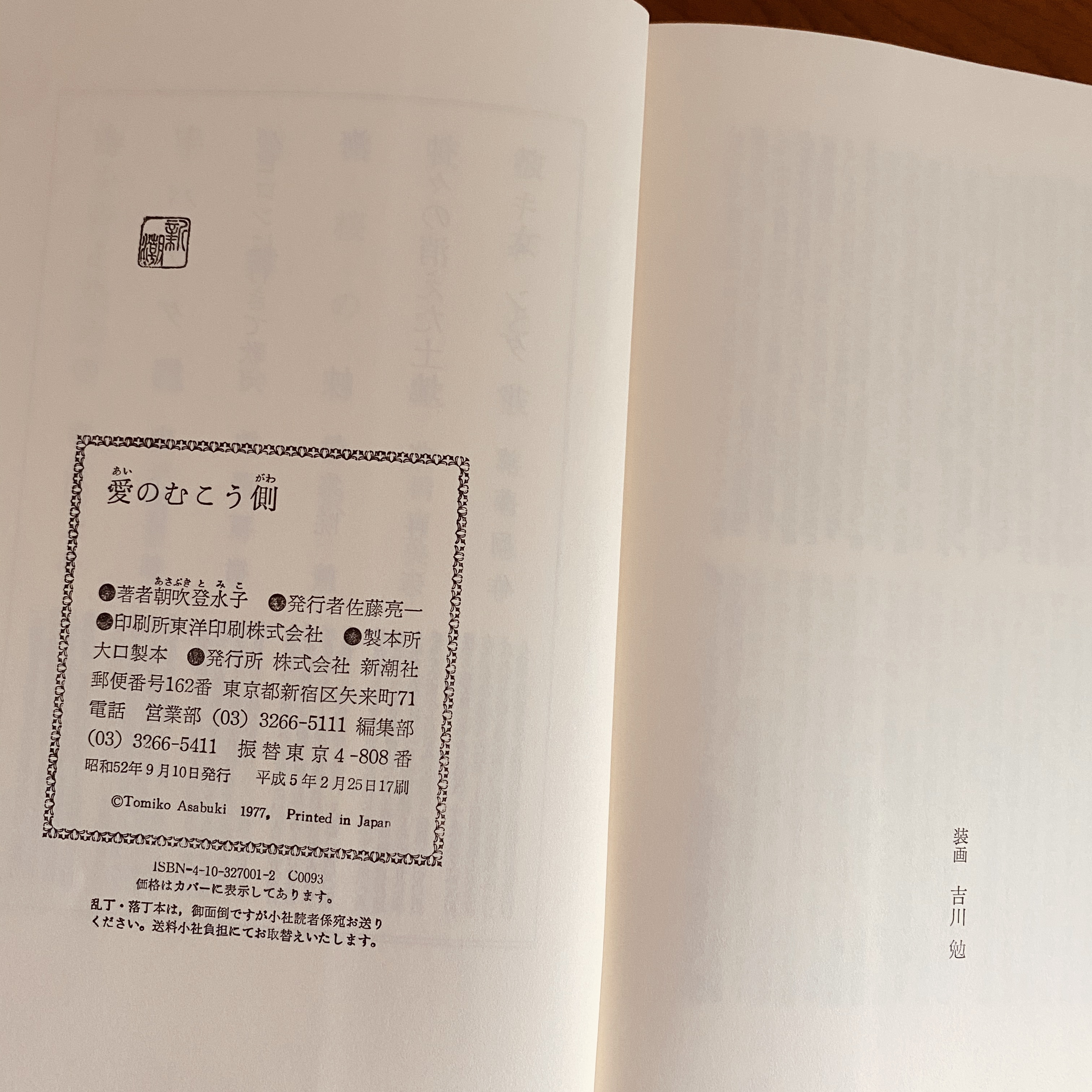 知道朝吹登水子是因为朝吹真理子,她们是来自同一个家族的,前者是后者的祖辈。不过,朝吹登水子除了做法文翻译以后,也会自己写书,但很多都买不到了,其中一本《愛のむこう側》,也是我日亚上看到的。当时看它,只知道它是中古书籍,没见到真面目的时候,也不好说什么。当我收到它的时候,着实惊讶不已。